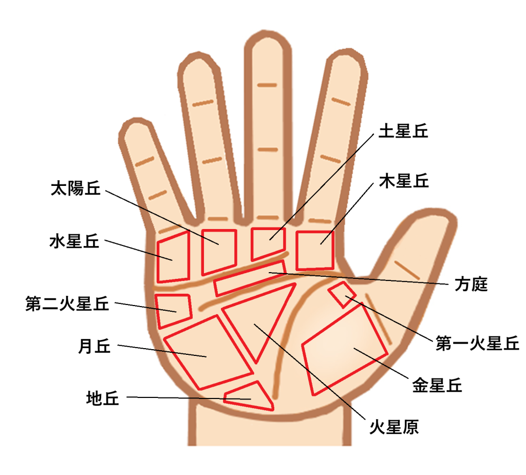 手相には丘のふくらみ方で性格や運勢をみることができます。丘の肉付きが良いと、その丘の持つ意味が強調されることを表します。